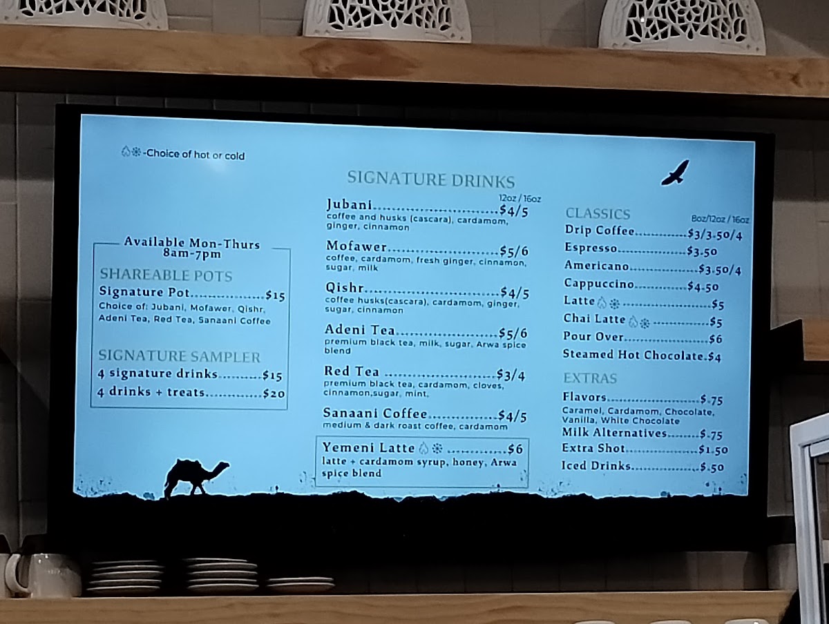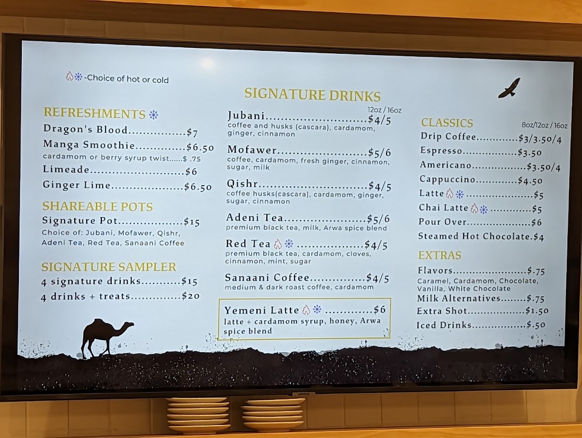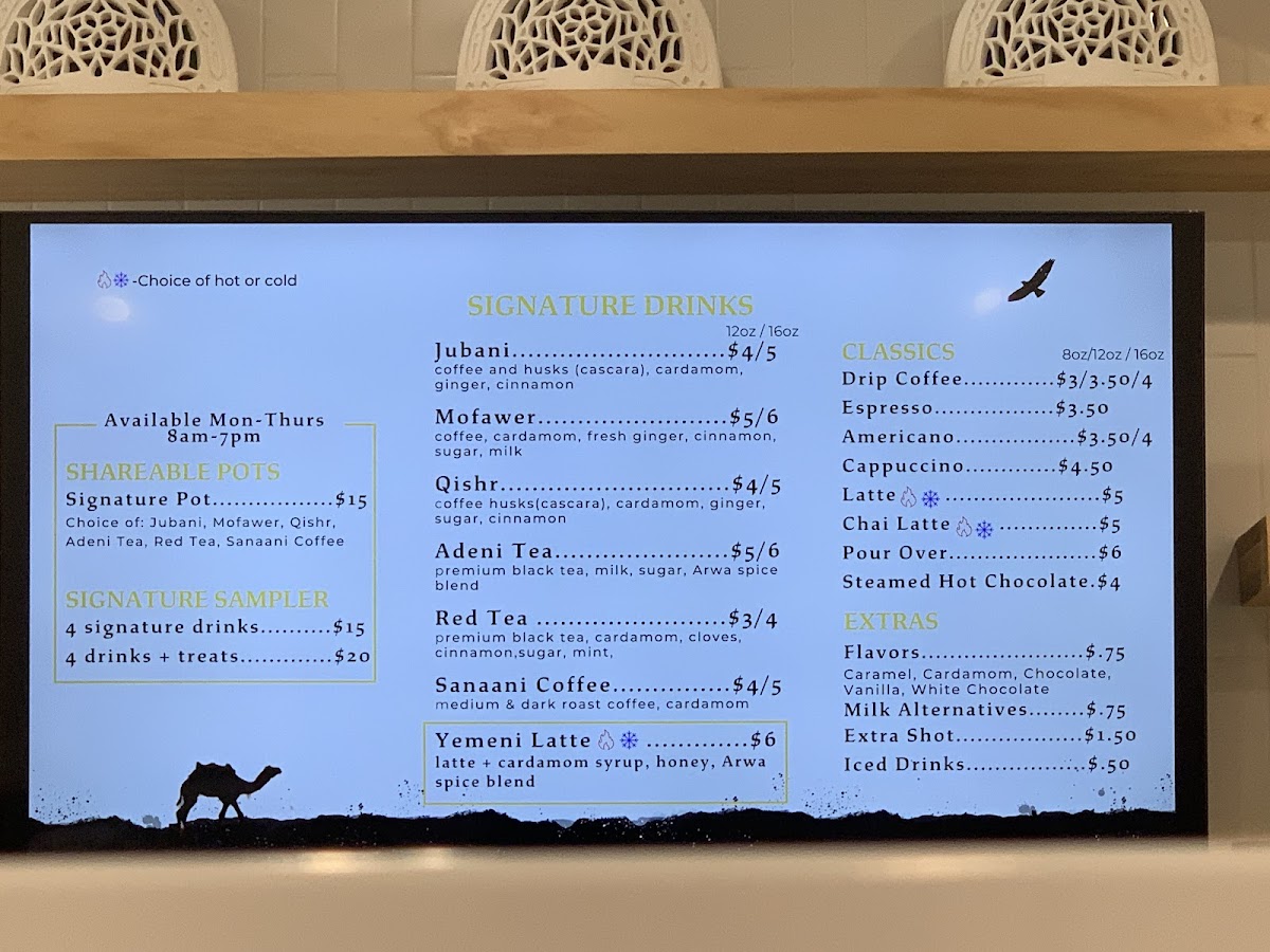 Whether you seek a cozy corner or the serene ambiance of their backyard, Arwa Yemeni Coffee is perfect for enjoying a cup while catching up or simply savoring the moment.