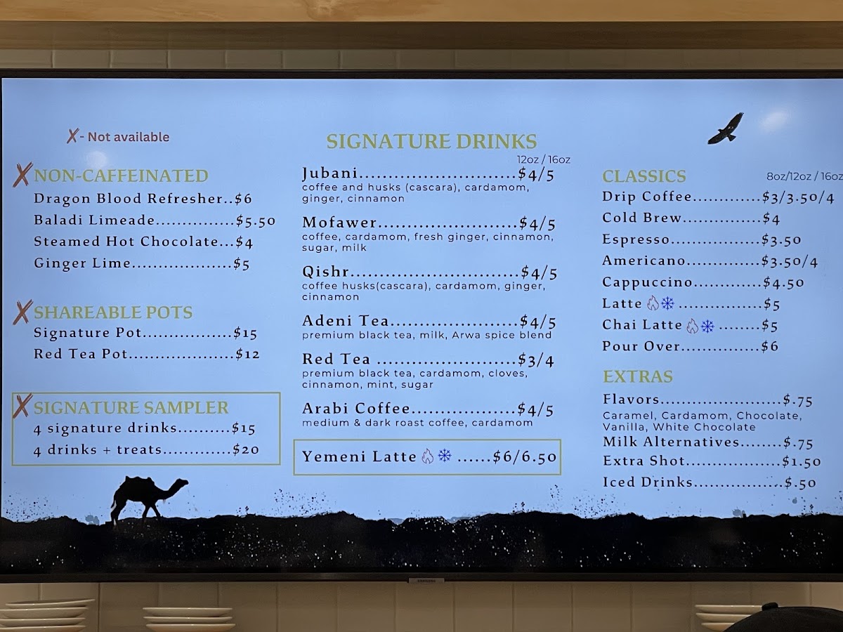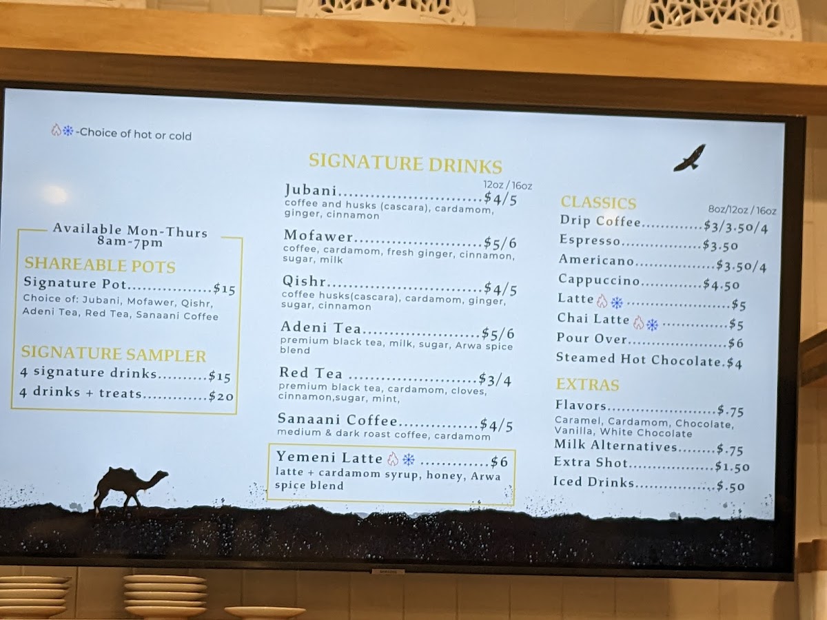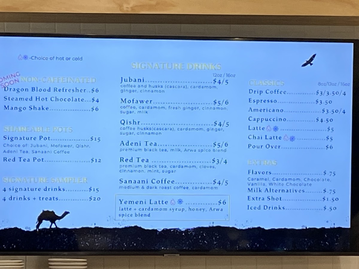 Whether you seek a cozy corner or the serene ambiance of their backyard, Arwa Yemeni Coffee is perfect for enjoying a cup while catching up or simply savoring the moment.